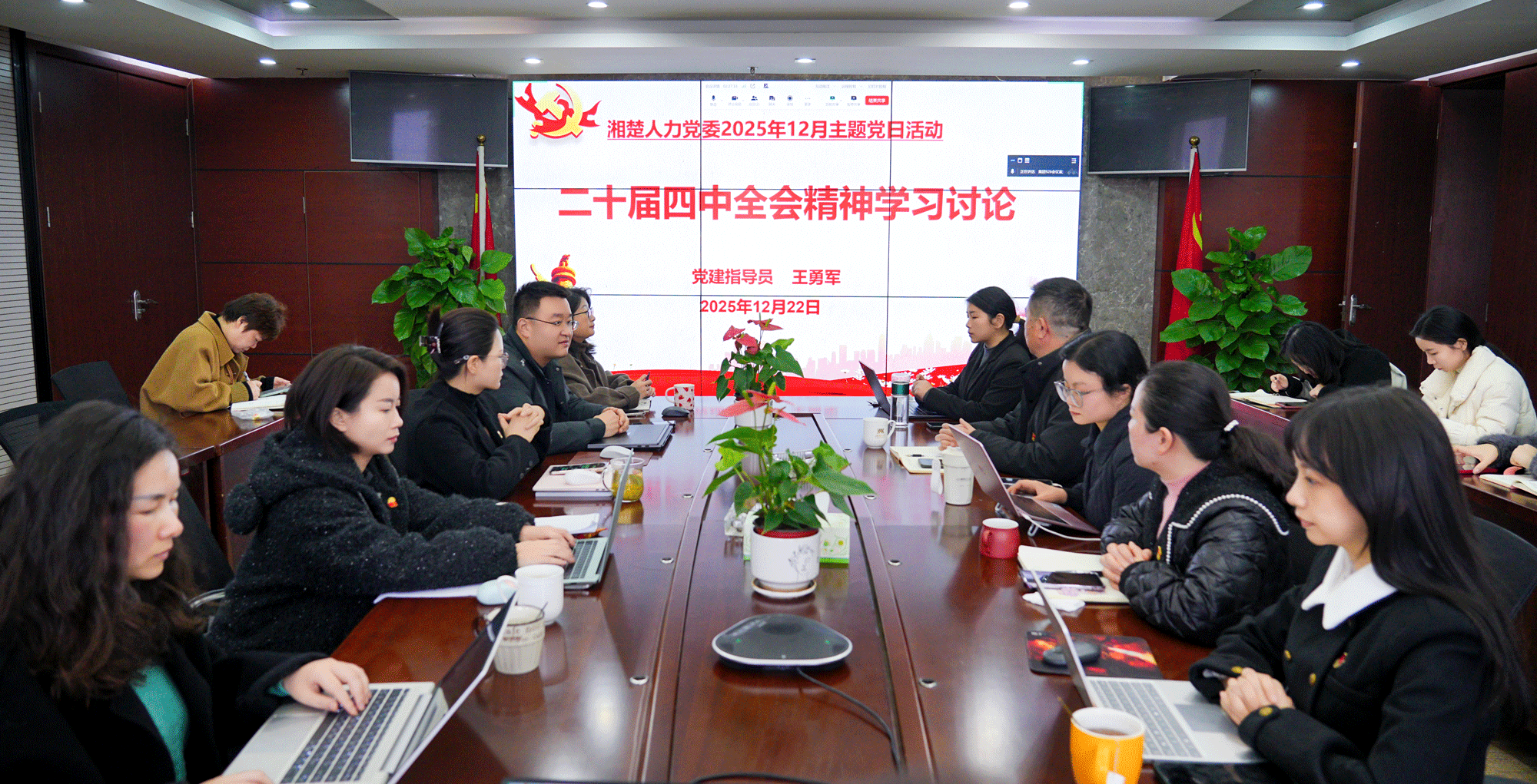 为深入学习贯彻党的二十届四中全会精神,推动全会部署与人力资源行业发展、企业经营实践深度融合,12月22日,湘楚人力党委在湘潭设立主会场,长沙分会场以视频形式同步联动,举行党的二十届四中全会精神专题宣讲会。本次宣讲以“夯实基础、全面发力,奋力谱写中国式现代化新篇章”为核心主题,分两大环节有序推进,旨在统一思想共识、凝聚奋进力量,为公司高质量发展注入红色动能。