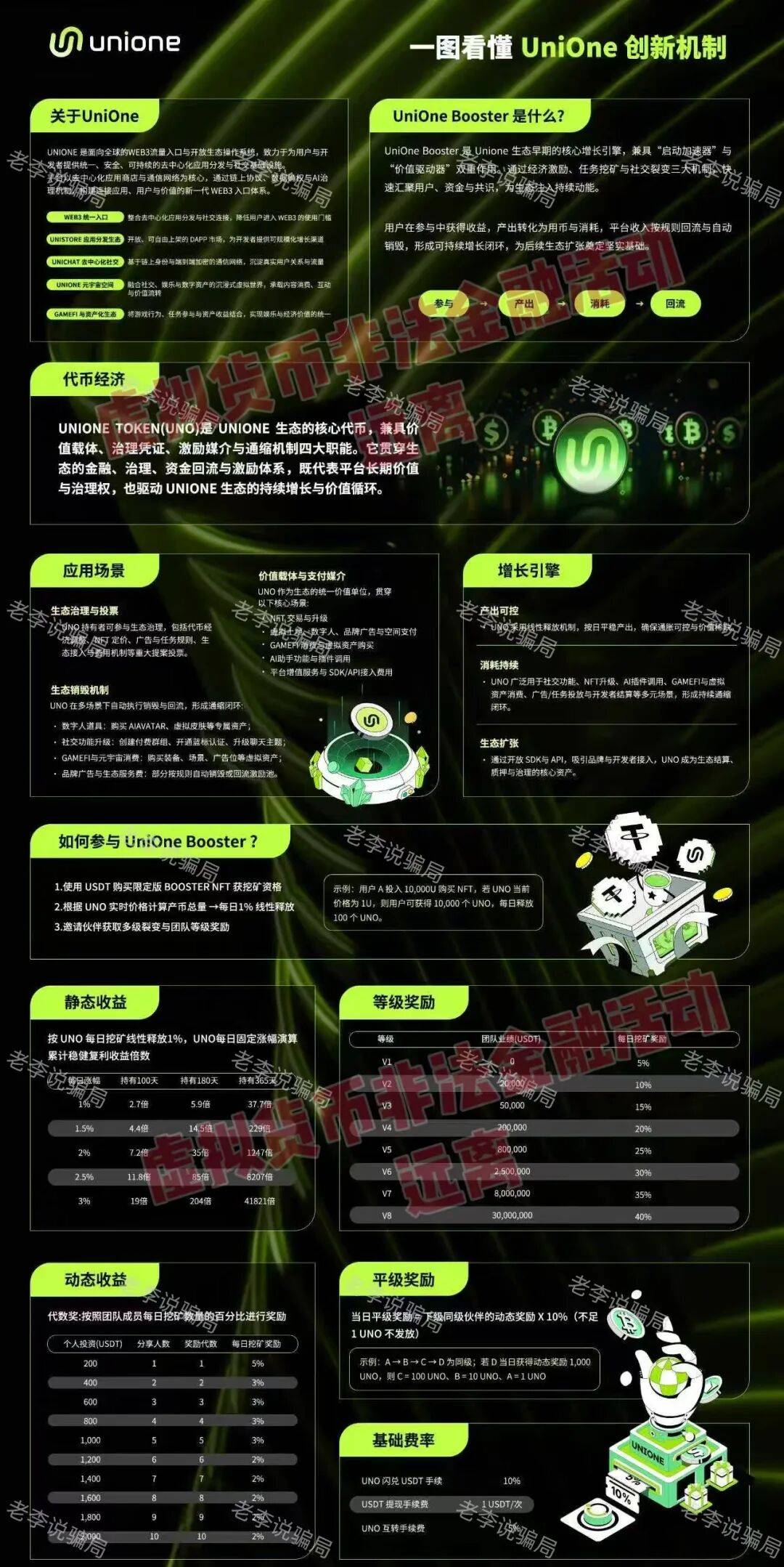 承诺静态年化收益高达37倍,但完全依靠自己发行的“UNO币”支撑,没有任何真实价值。