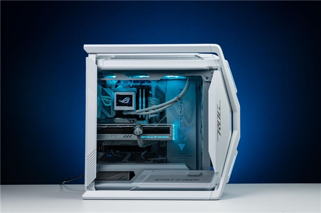纯白高颜值的ROG创世神机箱白色版,无疑是众多颜值党的首选。其采用独特的X形铝合金外骨架设计,搭配对开式钢化玻璃侧板,不仅展现出酷炫非凡的外观,更彰显出科技与时尚的惊艳融合。同时,前面板左右侧和钢化玻璃边缘巧妙地增加了气流通道,优化了风道,有效强化了散热效果,为玩家在激烈游戏过程中提供稳定可靠的运行环境,大幅提升电竞新体验。值得一提的是,该机箱采用全塔式设计,具备出色的兼容性,能够轻松容纳E-ATX主板,支持安装双420+360冷排,为玩家在硬件选择上提供了极大的自由度,充分满足高平台硬件的需求。此外,该机箱还配备了双模显卡支架,支持横竖两种安装方式,方便玩家根据自身需求和喜好进行自由DIY,轻松打造出独具个性的主机。